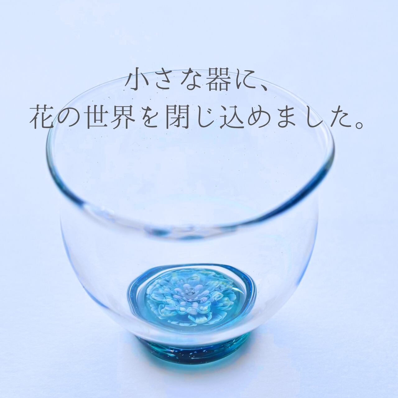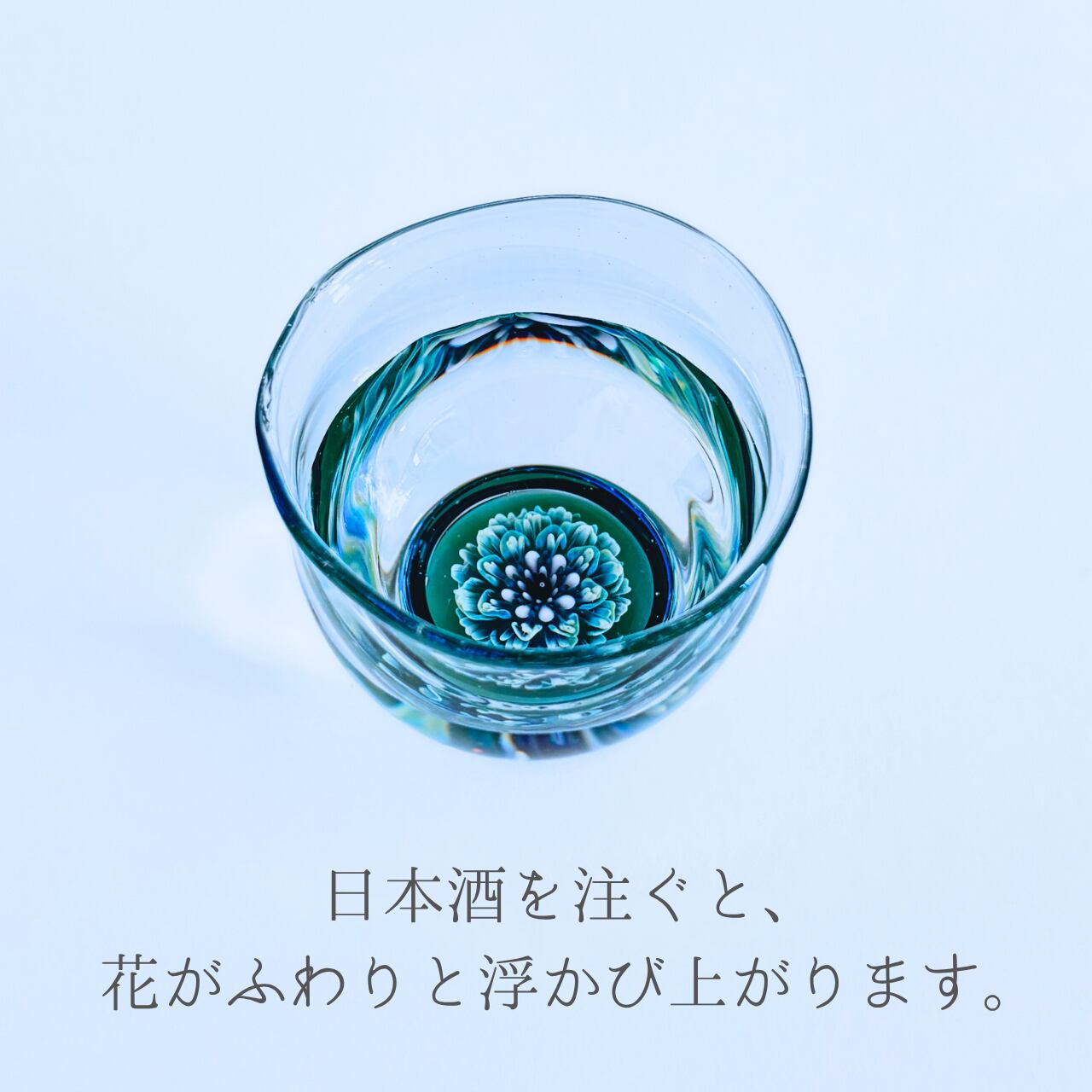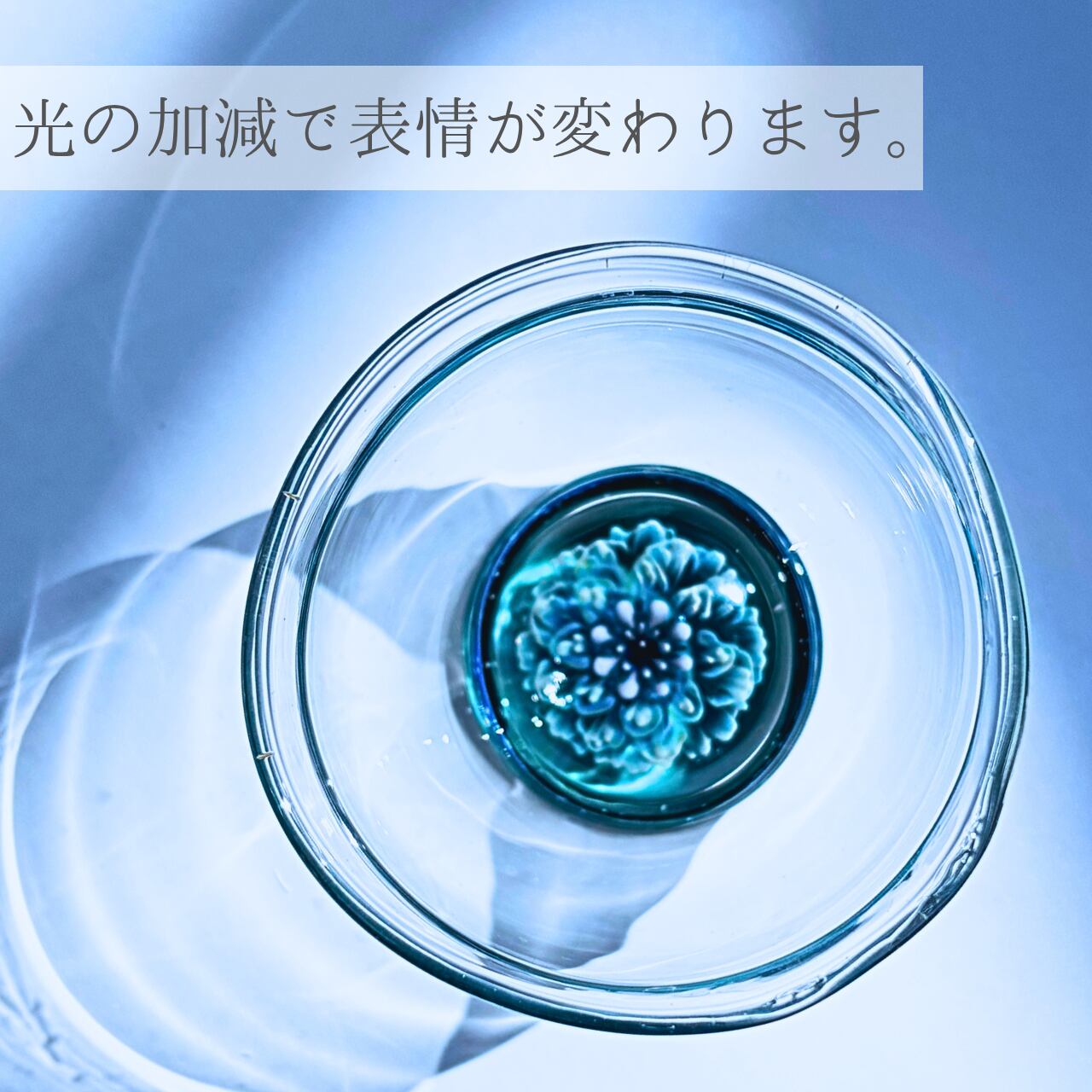お酒を注ぐと、花びらが水面に咲いたように浮かび上がり、光の角度によってさまざまな表情を見せます。