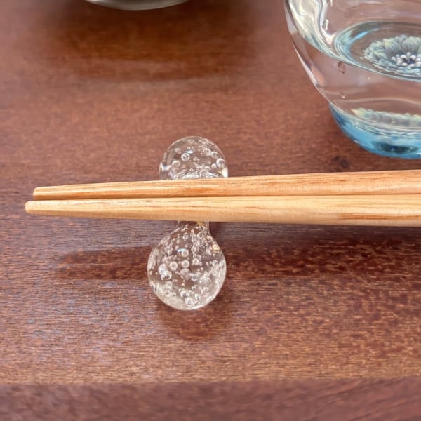 透明感のある耐熱ガラスを使用し、中にたくさんの気泡を閉じ込めたあわあわお箸置き。