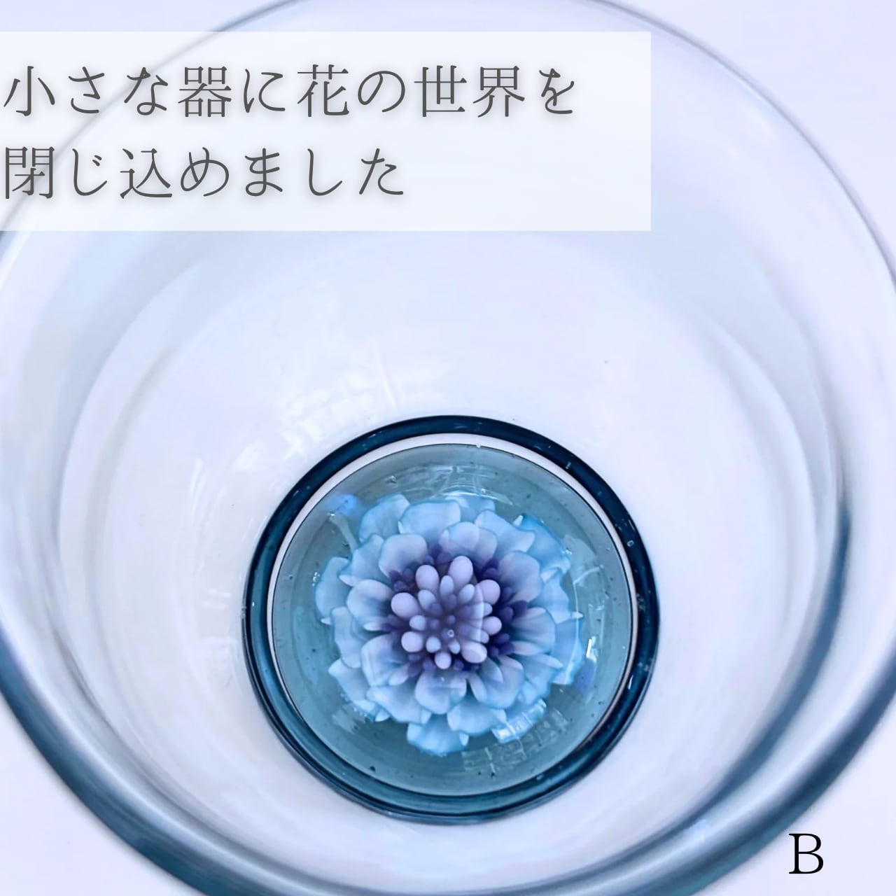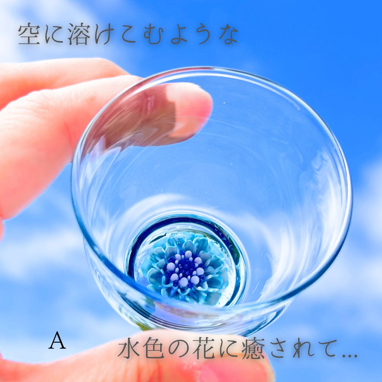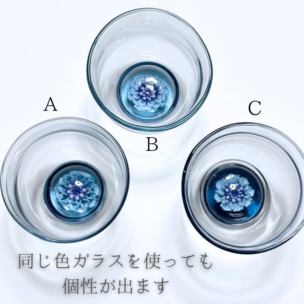 グラスの中に咲く花はすべて一点もので、色や形に個性があります。