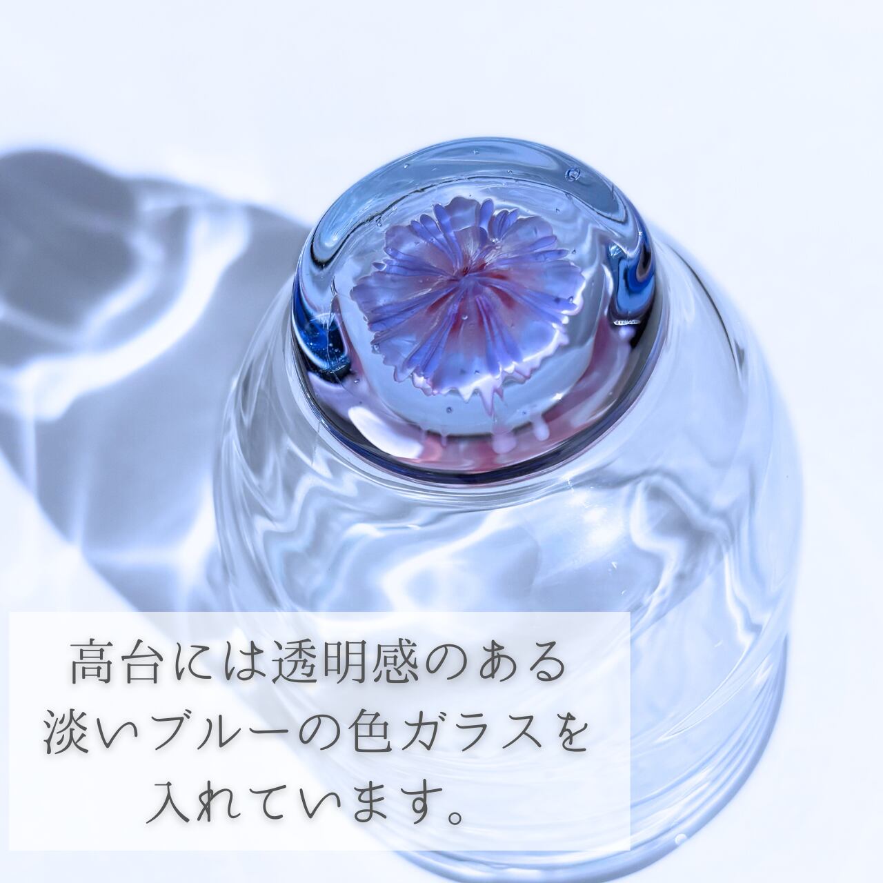 グラスの中に咲く花はすべて一点もので、色や形に個性があります。