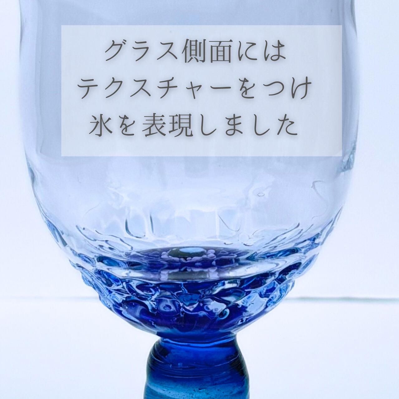 また、グラスの下部には淡いブルーのガラスをあしらい、氷のようなテクスチャを加えました。