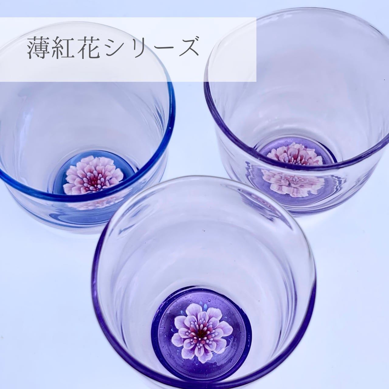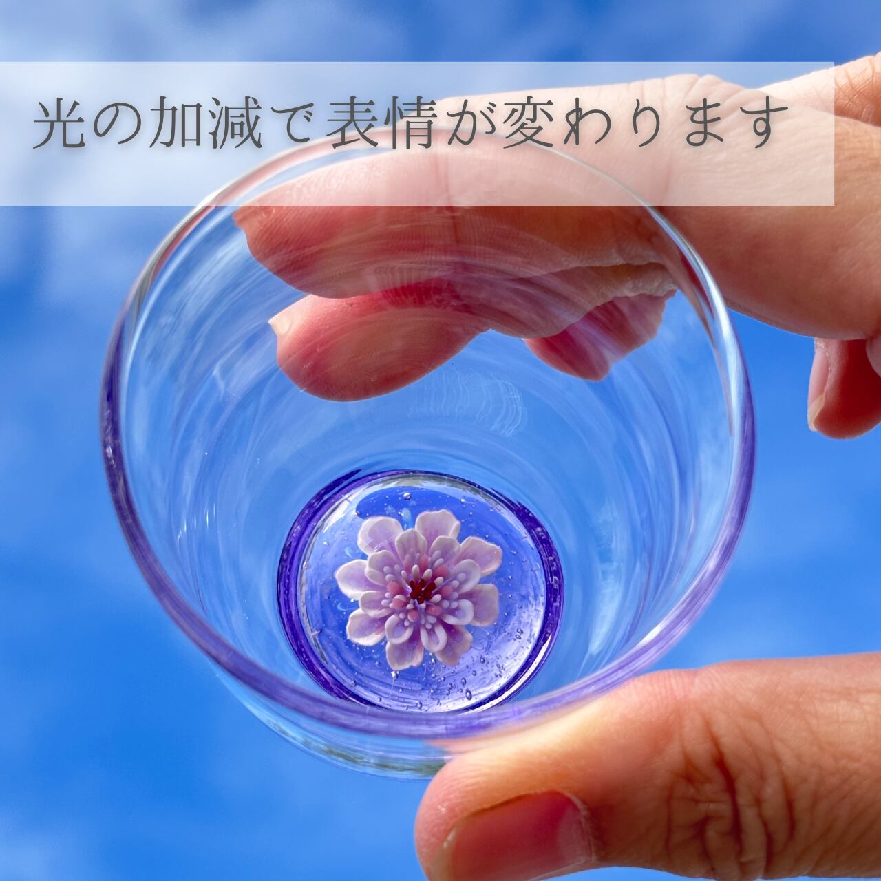 グラスの中に咲く花はすべて一点もので、色や形に個性があります。