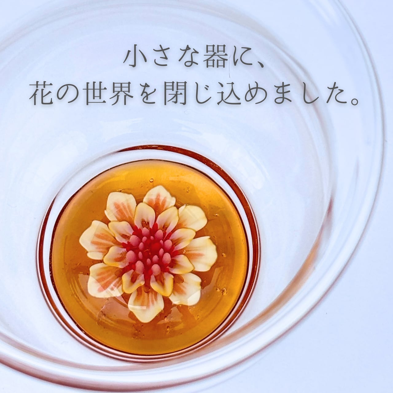 グラスの中に咲く花はすべて一点もので、色や形に個性があります。
