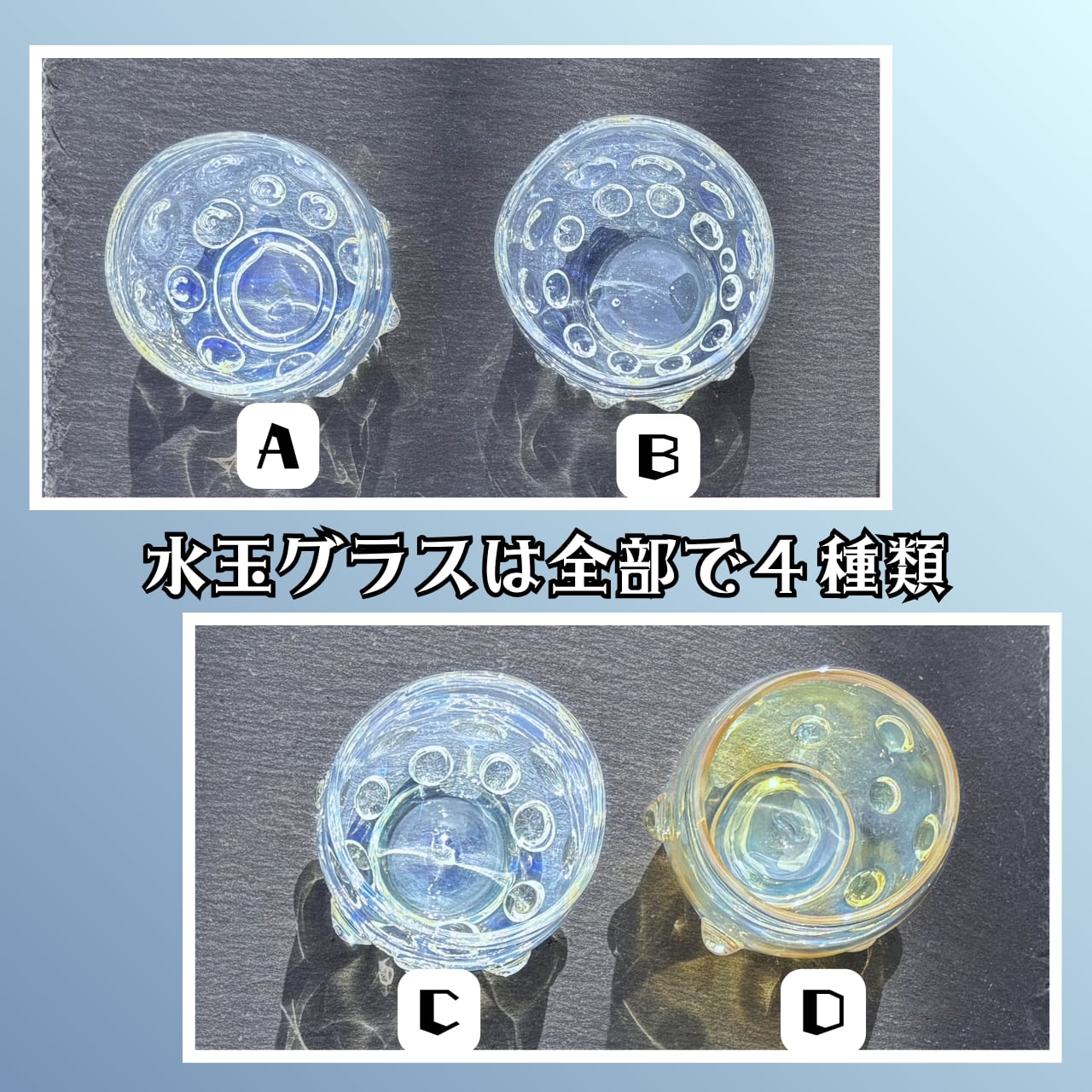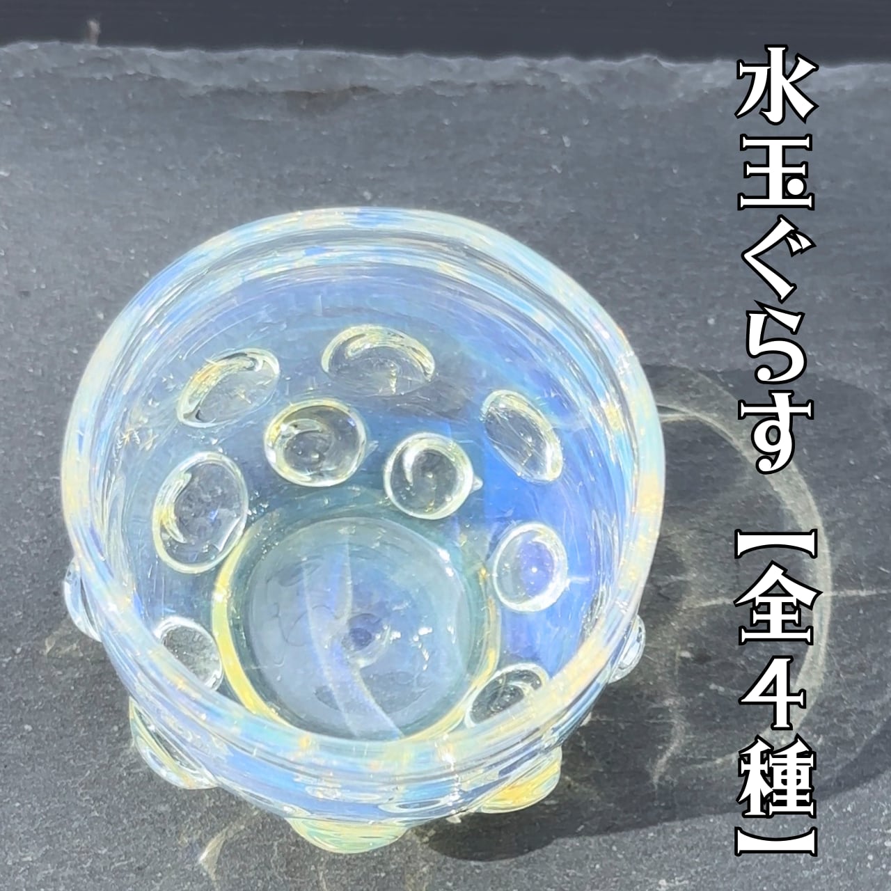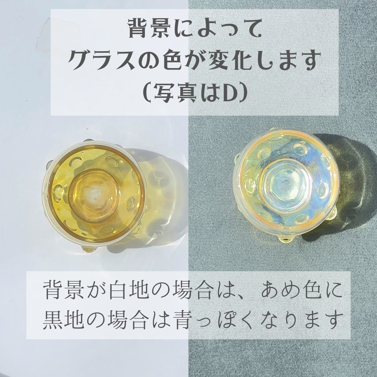 同じ「水玉ぐらす」でも、銀の融着の濃淡や水玉の数が少しずつ異なり、すべてが一点ものです。