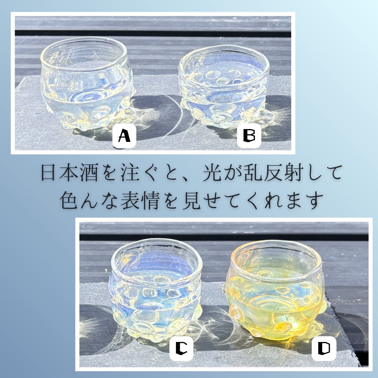 日本酒はもちろん、冷茶やリキュールなど、さまざまなお飲み物を注いで、映りゆく色合いをご堪能ください。