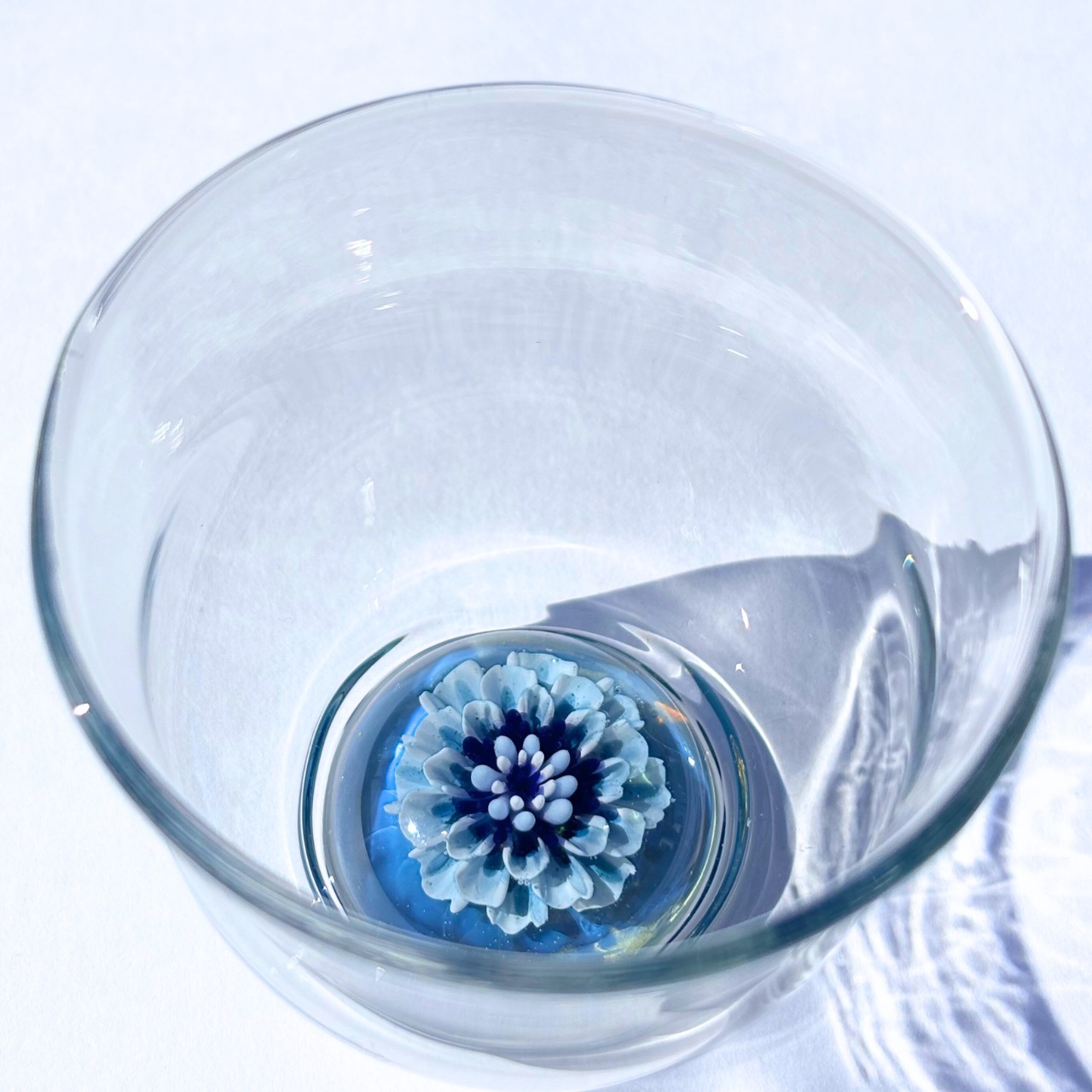 それぞれのグラスには異なる水中花が入っており、個性豊かな一点ものとしてお楽しみいただけます。食洗機にも対応しており、日常使いでも気軽にご利用いただけます。
