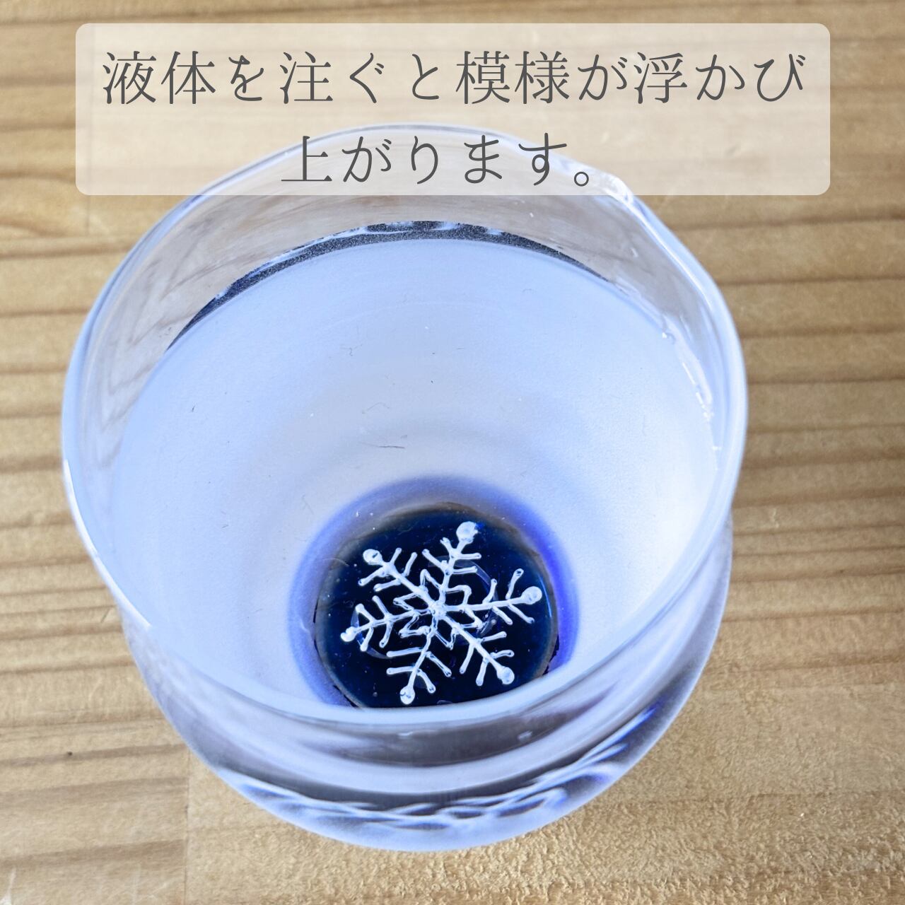 お酒を注ぐと、底の雪の結晶がふわりと浮かび上がります。