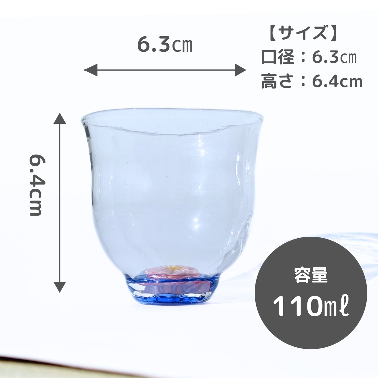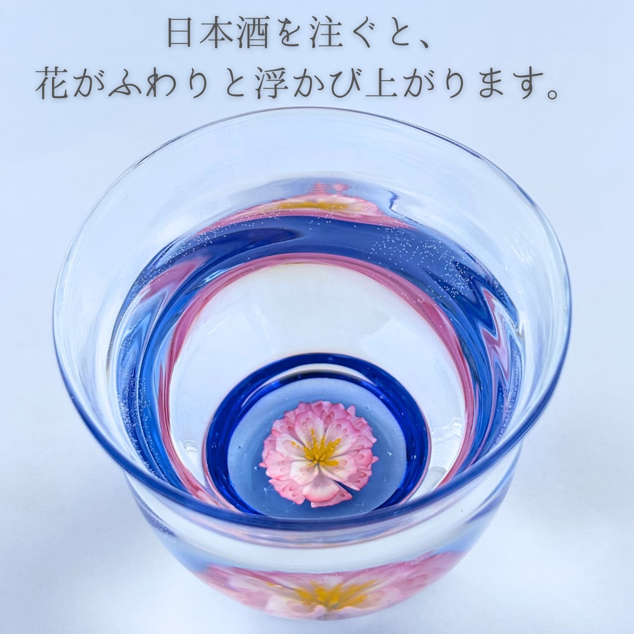 このグラスは、鮮やかな青空を思わせる美しい色合いを基に、立体的にデザインされた桜の花が魅力です。