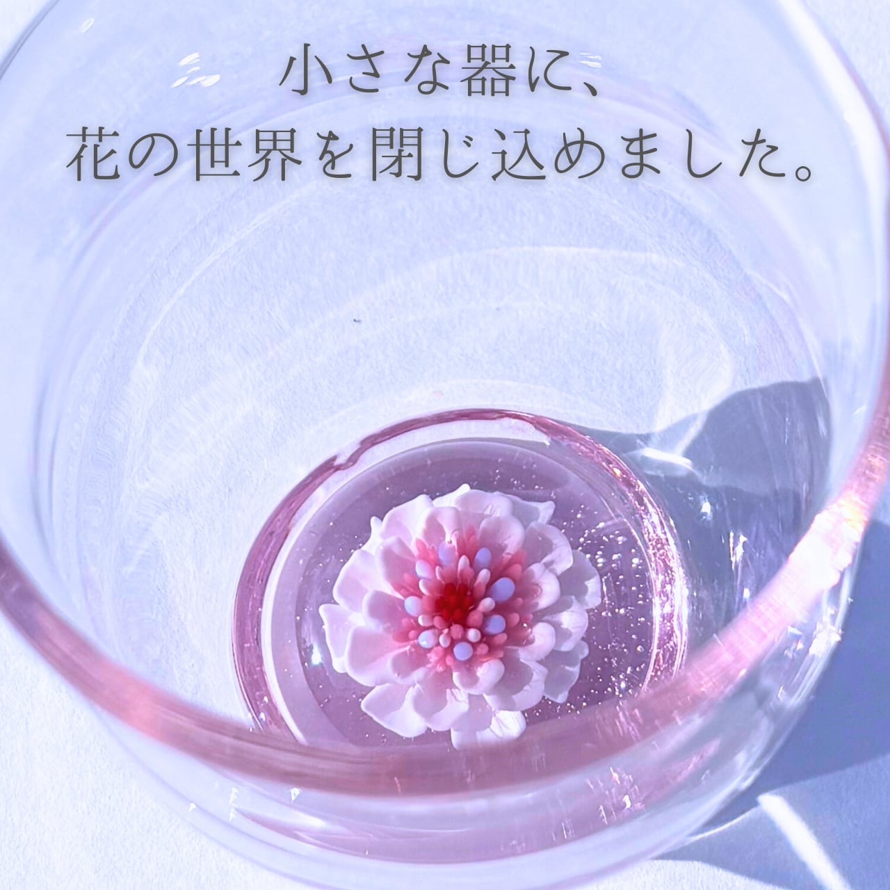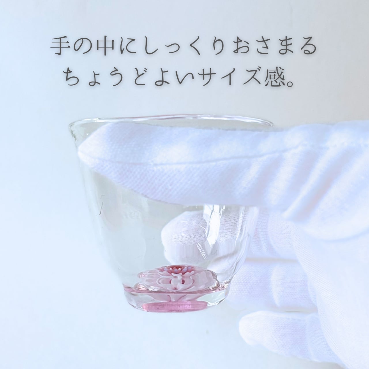 このグラスは、淡い花々の美しさを引き立てる透明感が魅力で、春の訪れを感じさせてくれます。